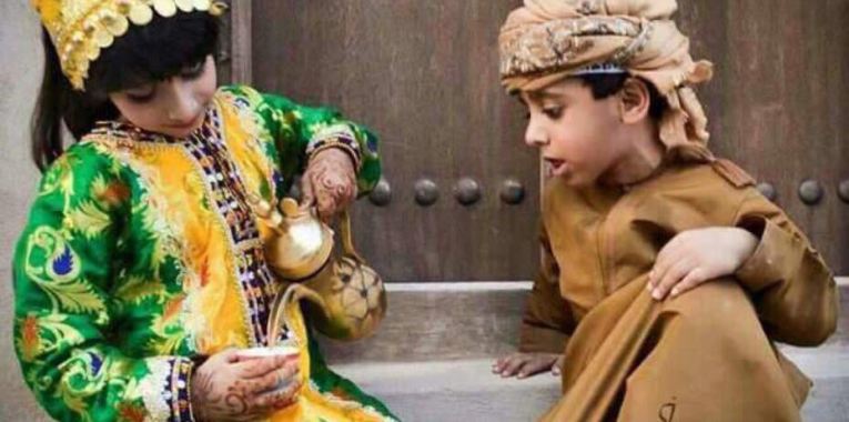 The party for men is usually held on a Saturday (second day of the weekend) morning; it is best if the date is close to the end of the month, after the salary has arrived. The groom’s family will usually arrange a marquee near their house, near a mosque or at a space outside of town. The marquee will be rented for the day and be furnished with rugs and chairs, arranged in a circle. Sometimes there is a secondary tent to the side where the food is prepared. In many Dhofari tribes, the brothers, close friends and cousins of the groom will usually butcher the camels/ cows the night before, or very early in the morning; some meat is then distributed to close relatives and the rest given to restaurant workers to cook. The quantity of food shows the respect for the guests. No one is expecting (or would like) a new recipe or dishes. The two most important components are tea and meat with rice; Omani coffee, Omani sweet (halwa), fruit, soft drinks, water, salad are also served. Brothers and close friends come and go but there is always a core group next to the groom, i.e. he is never without a good friend and a brother or cousin to keep him company and help with the guests. The event ends at the ‘asr (mid afternoon) prayer when all the guests and the groom leave.